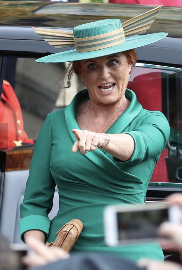 Comunque è stato il matrimonio di una delle due figlie di Sara Ferguson, per la precisione Eugenie che ha scelto un abito di Peter Pilotto, che io non avrei indossato mai ma che tutto sommato la rendeva gradevole… o forse era la tiara di brillanti e smeraldi della nonna?!?